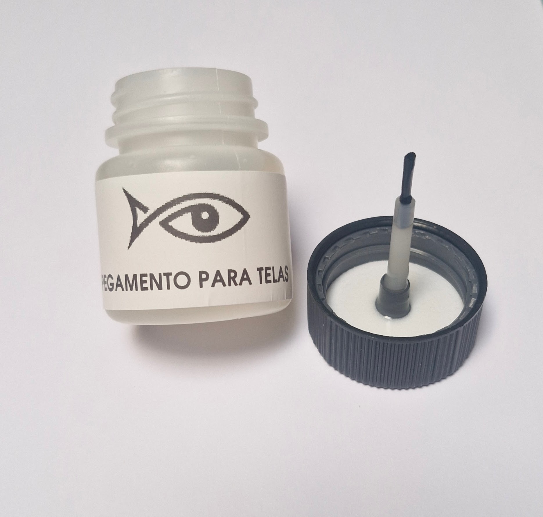 Aplicar una fina capa con el pincel incluido sobre el cuerpo del señuelo y colocar la tela.